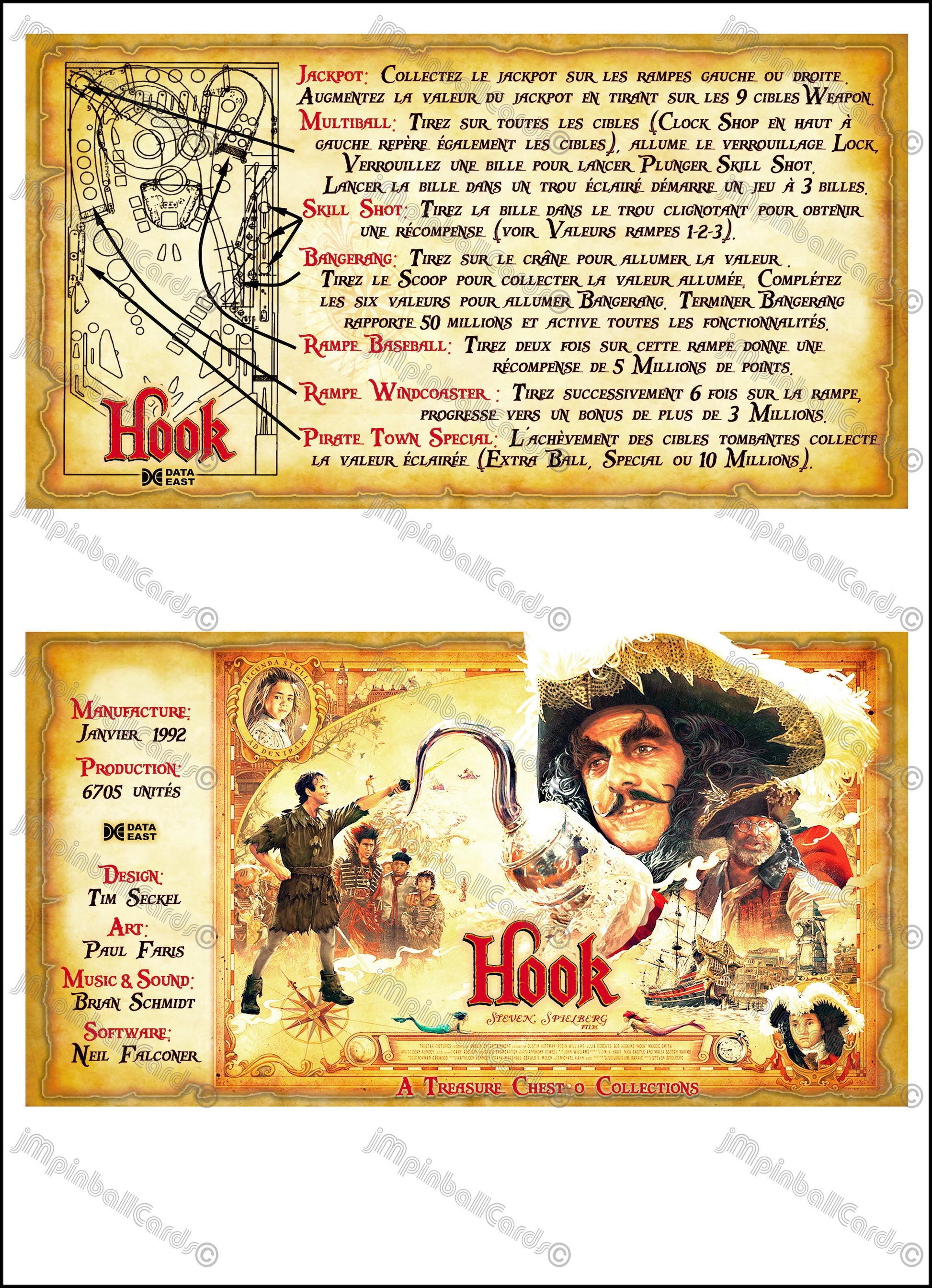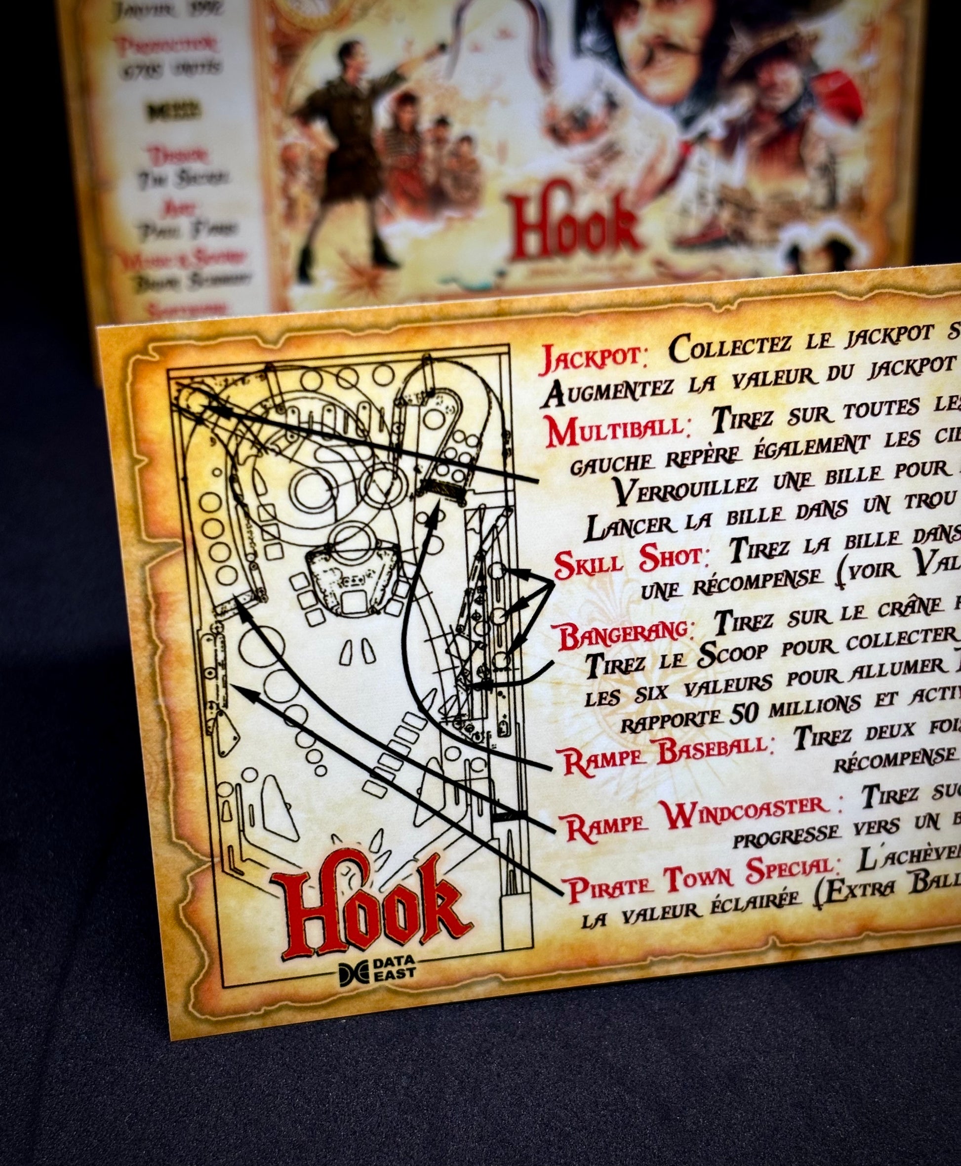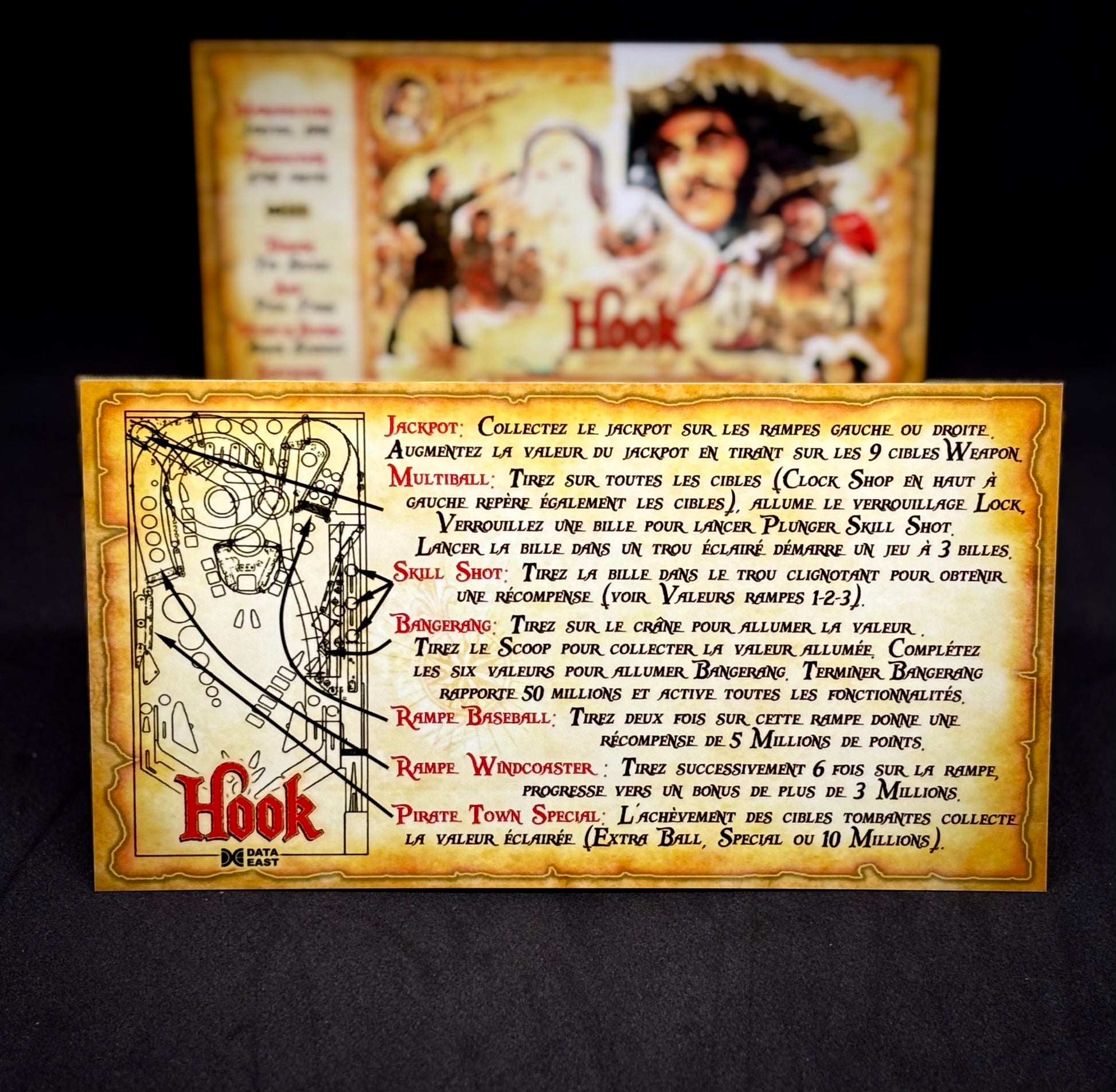 Data East Hook 1992 Game Cards Instructions Pinball Custom Apron Printed Rules V1