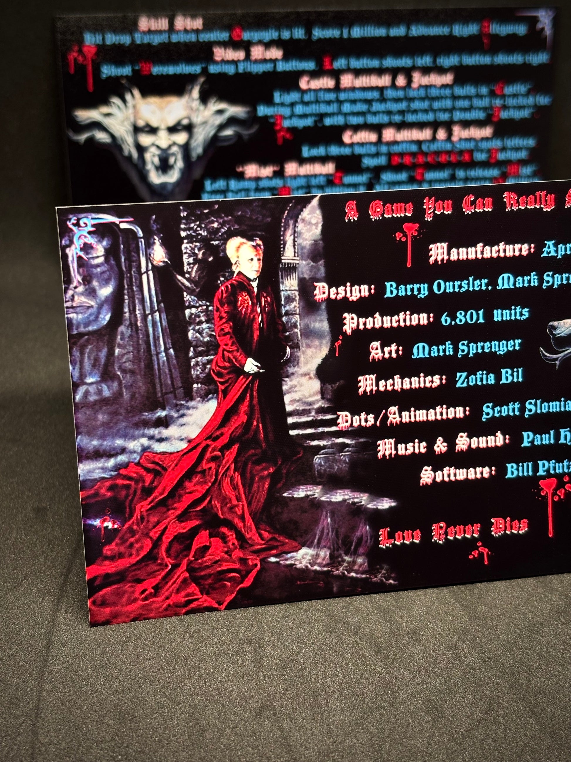 Williams Bram Stokers Dracula 1993 Game Cards Instructions Flipper Custom Apron Printed Rules V2