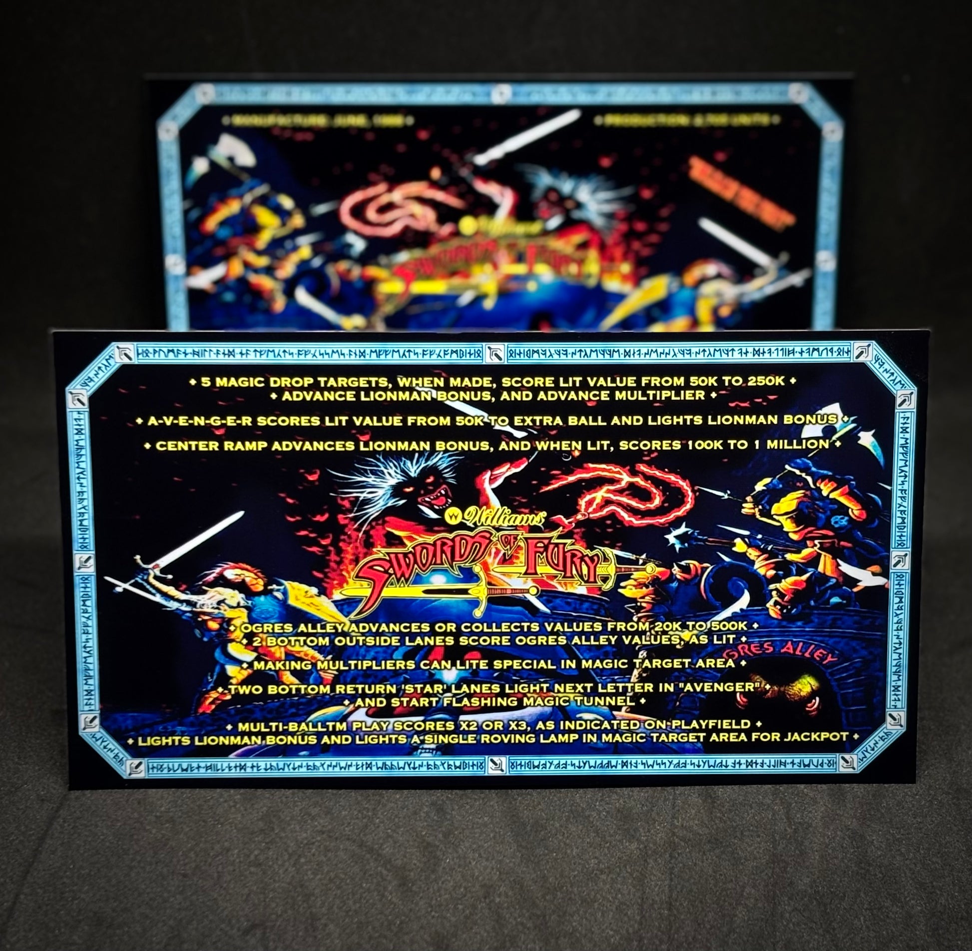 Williams Swords Of Fury 1988 Game Cards Instructions Pinball Custom Apron Printed Rules V2
