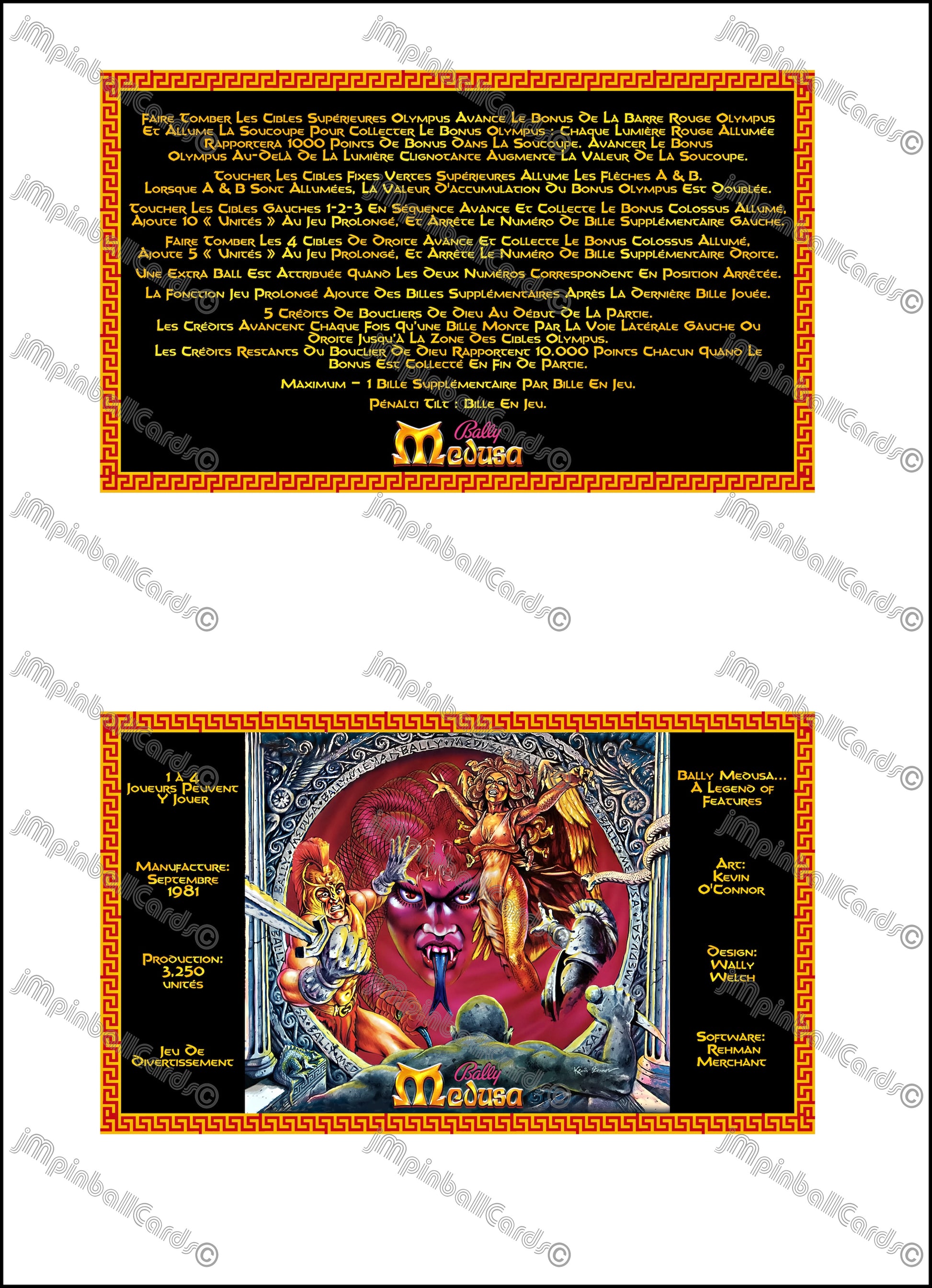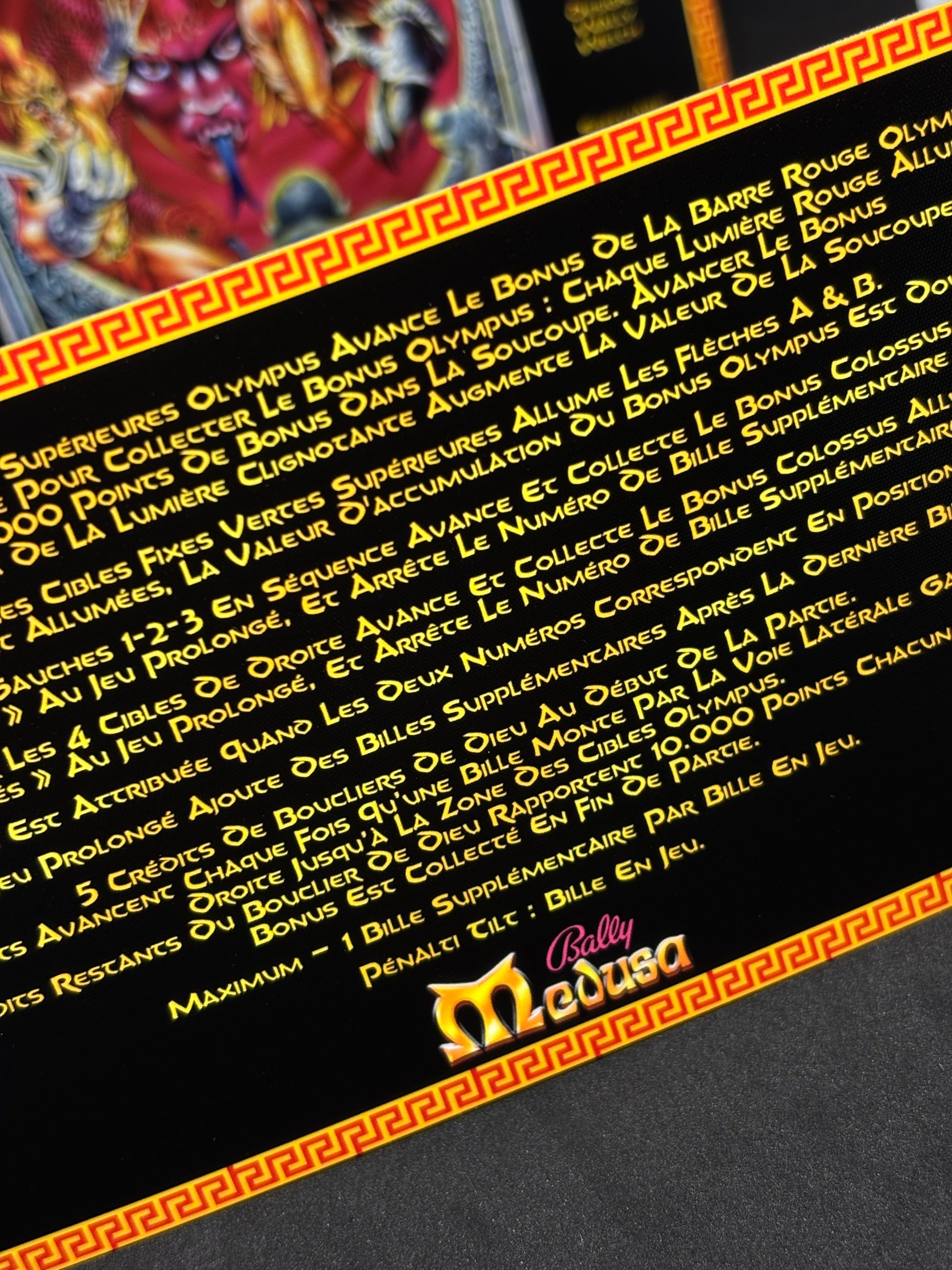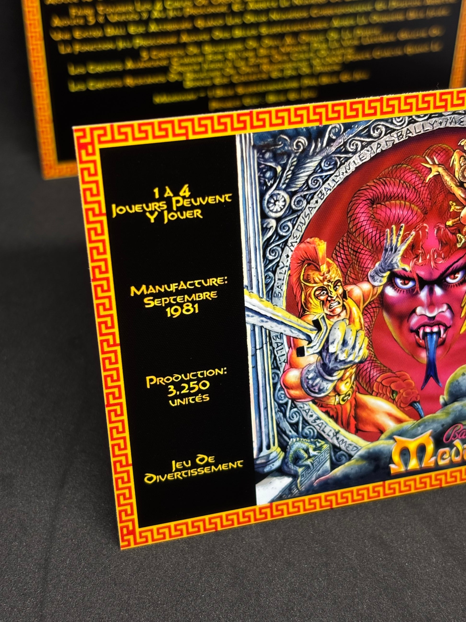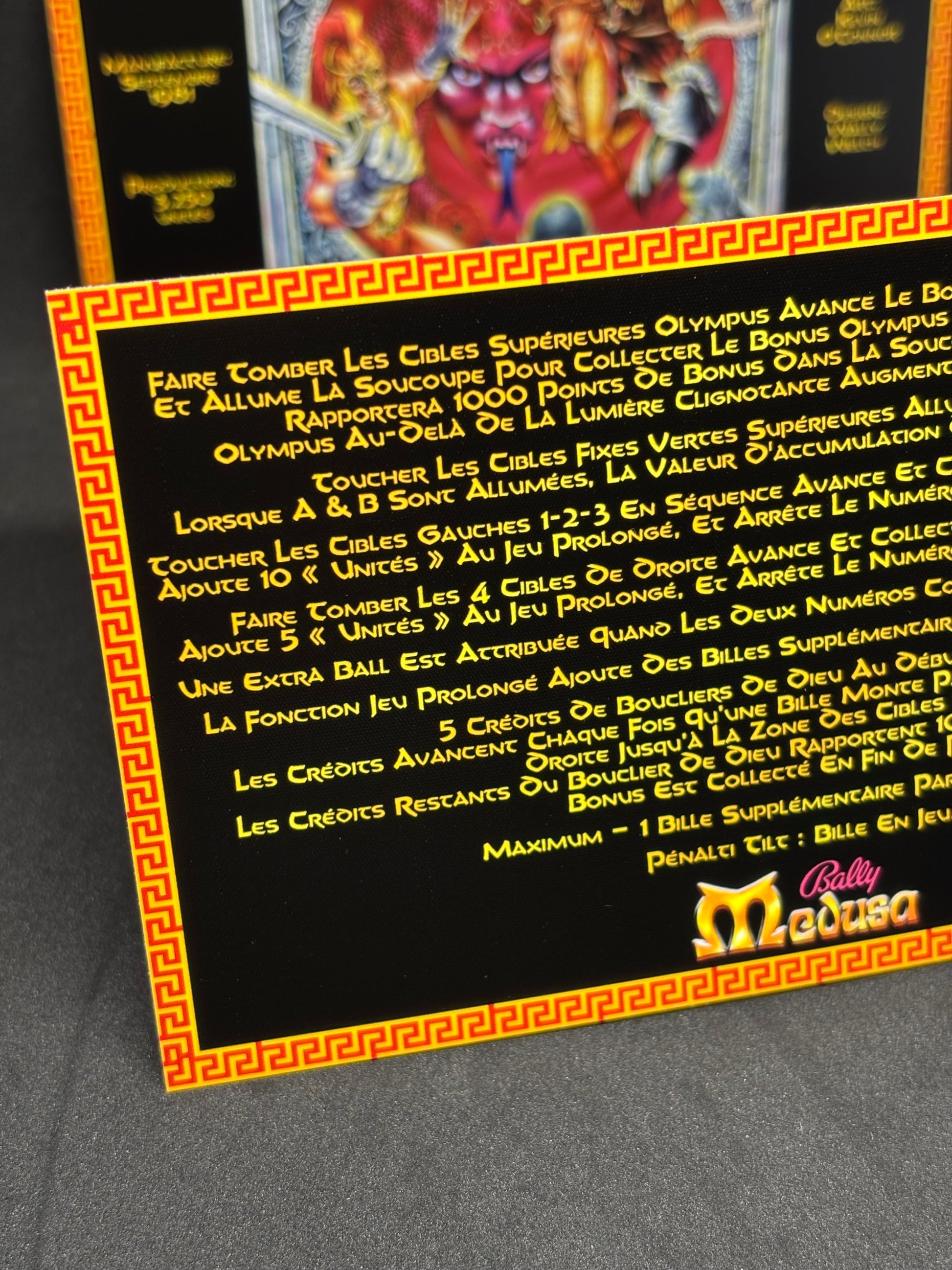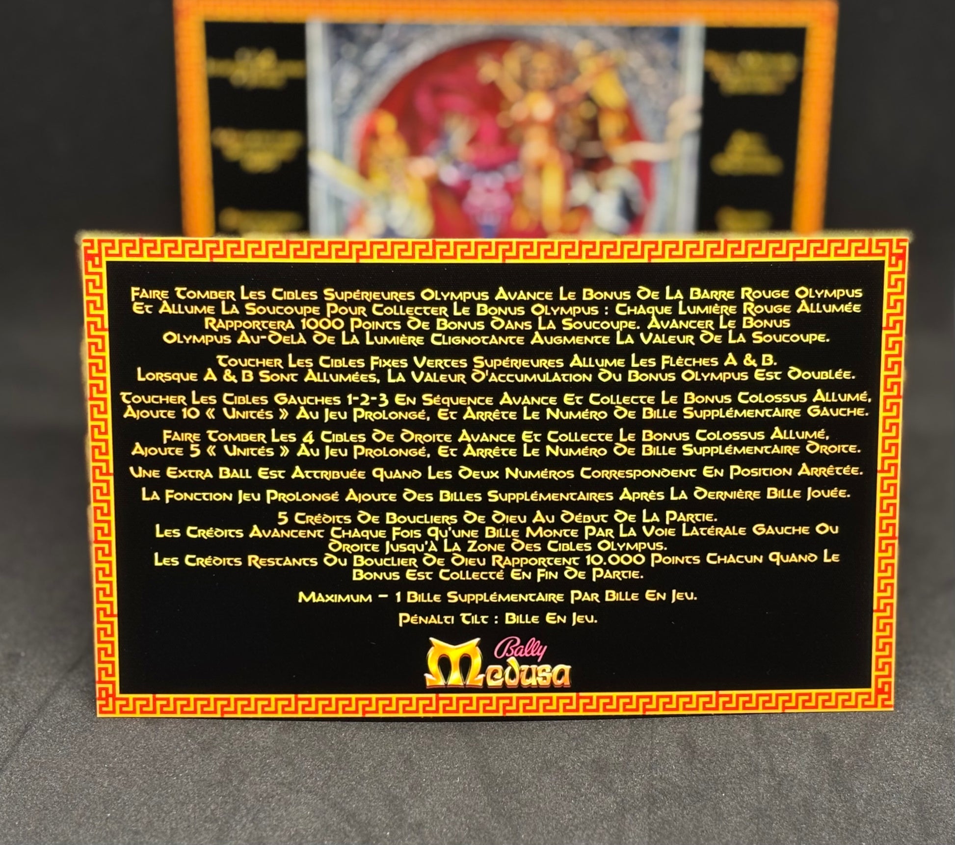 Bally MEDUSA 1981 Jeu Cartes Instructions Flipper Custom Apron règles imprimées
