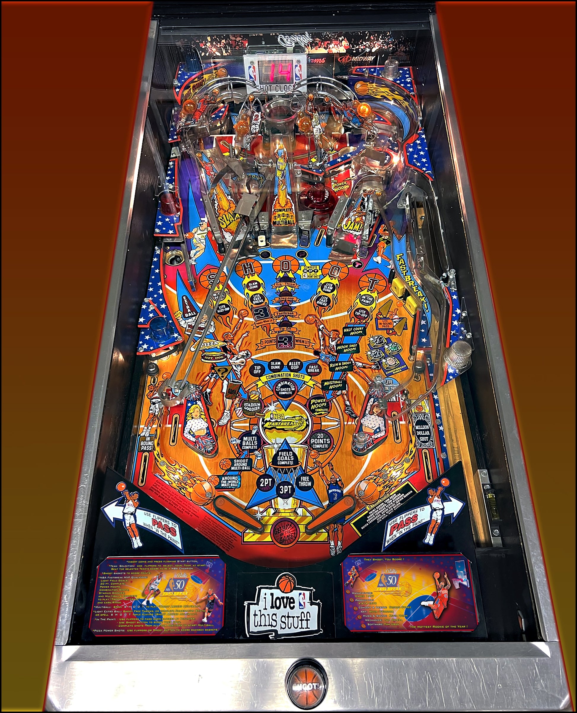 Bally NBA FASTBREAK 1997 Jeu Cartes Instructions Flipper Custom Apron règles imprimées V2