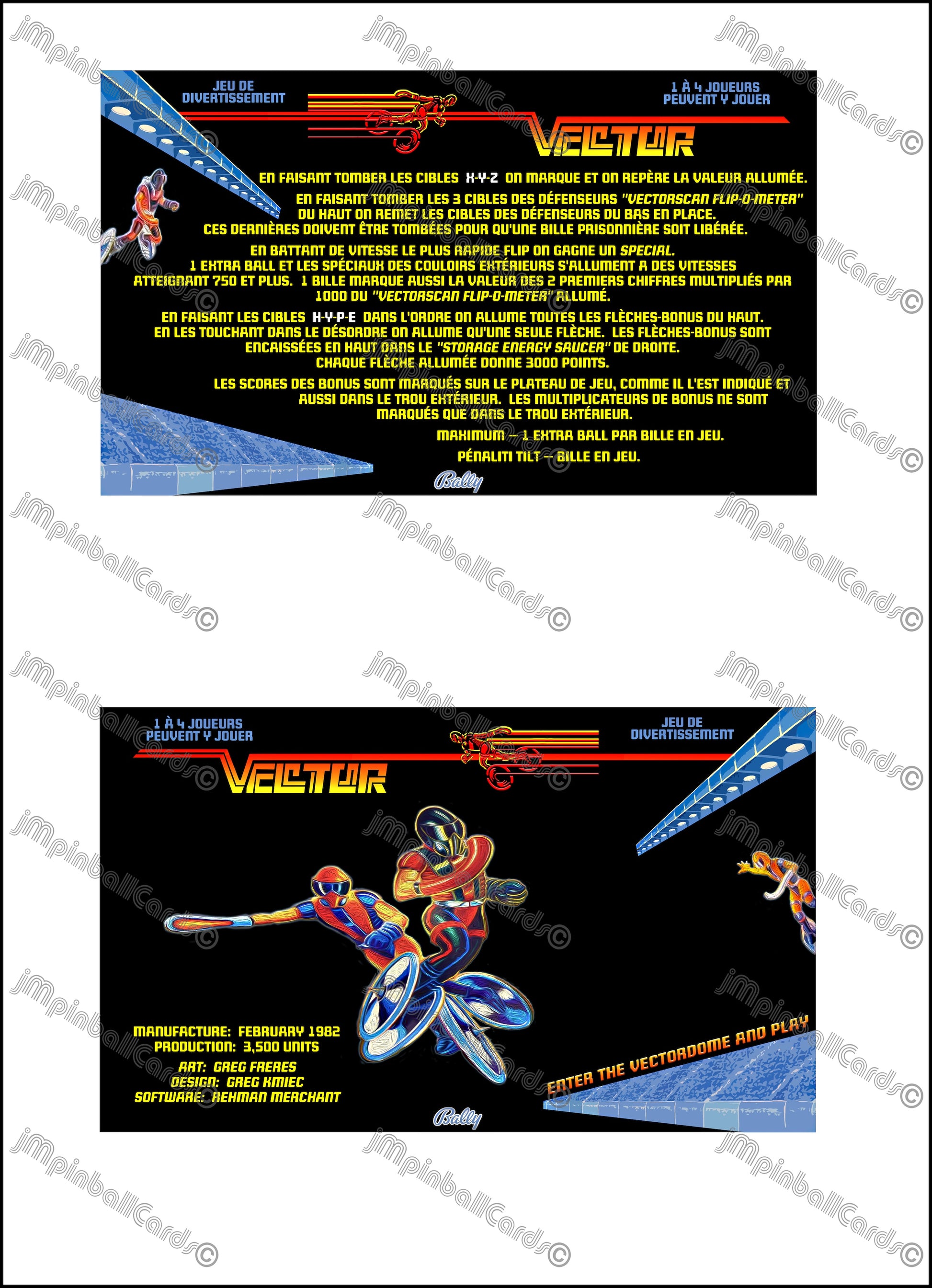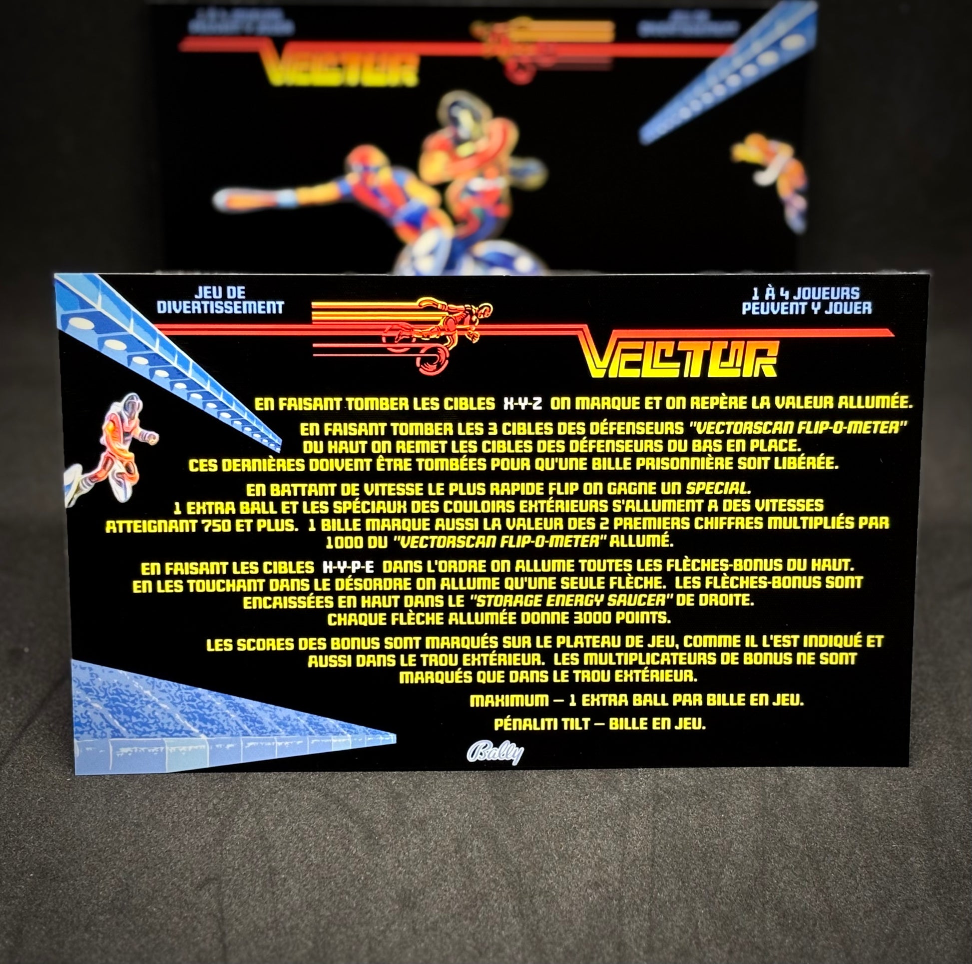 Bally Vector 1982 Jeu Cartes Instructions Flipper Custom Apron règles imprimées