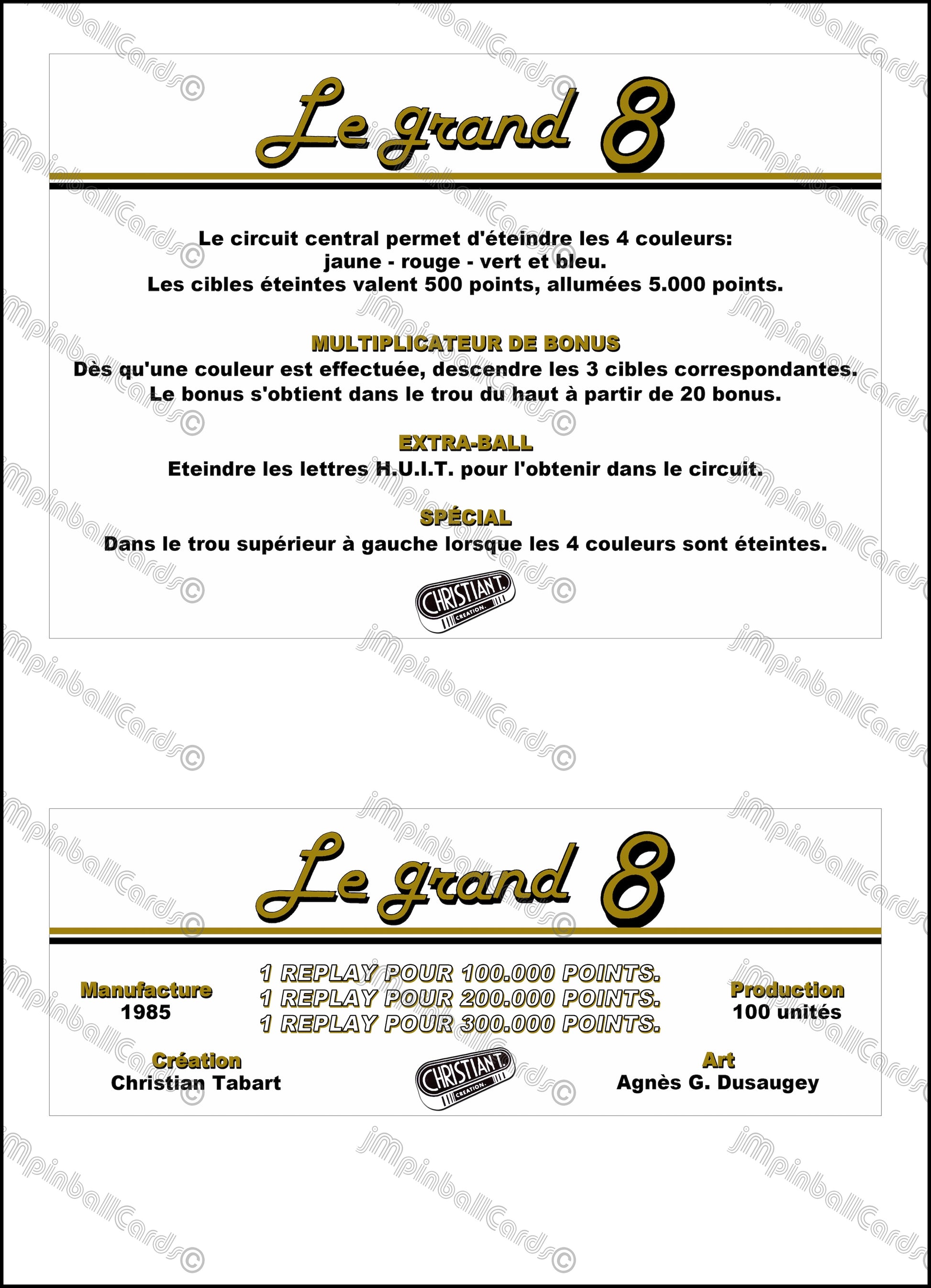 Christian Tabart Le Grand 8 1985 Jeu Cartes Instructions Flipper Custom Apron règles imprimées