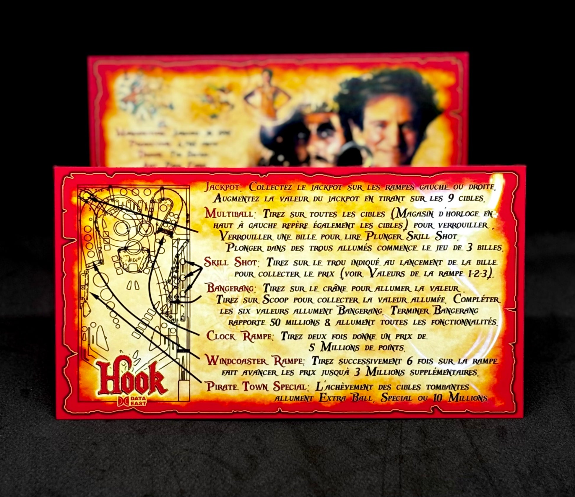 Instrucciones de las tarjetas del juego Data East Hook 1992, versión Pinball 2: tarjetas de pinball personalizadas con impresión personalizada.