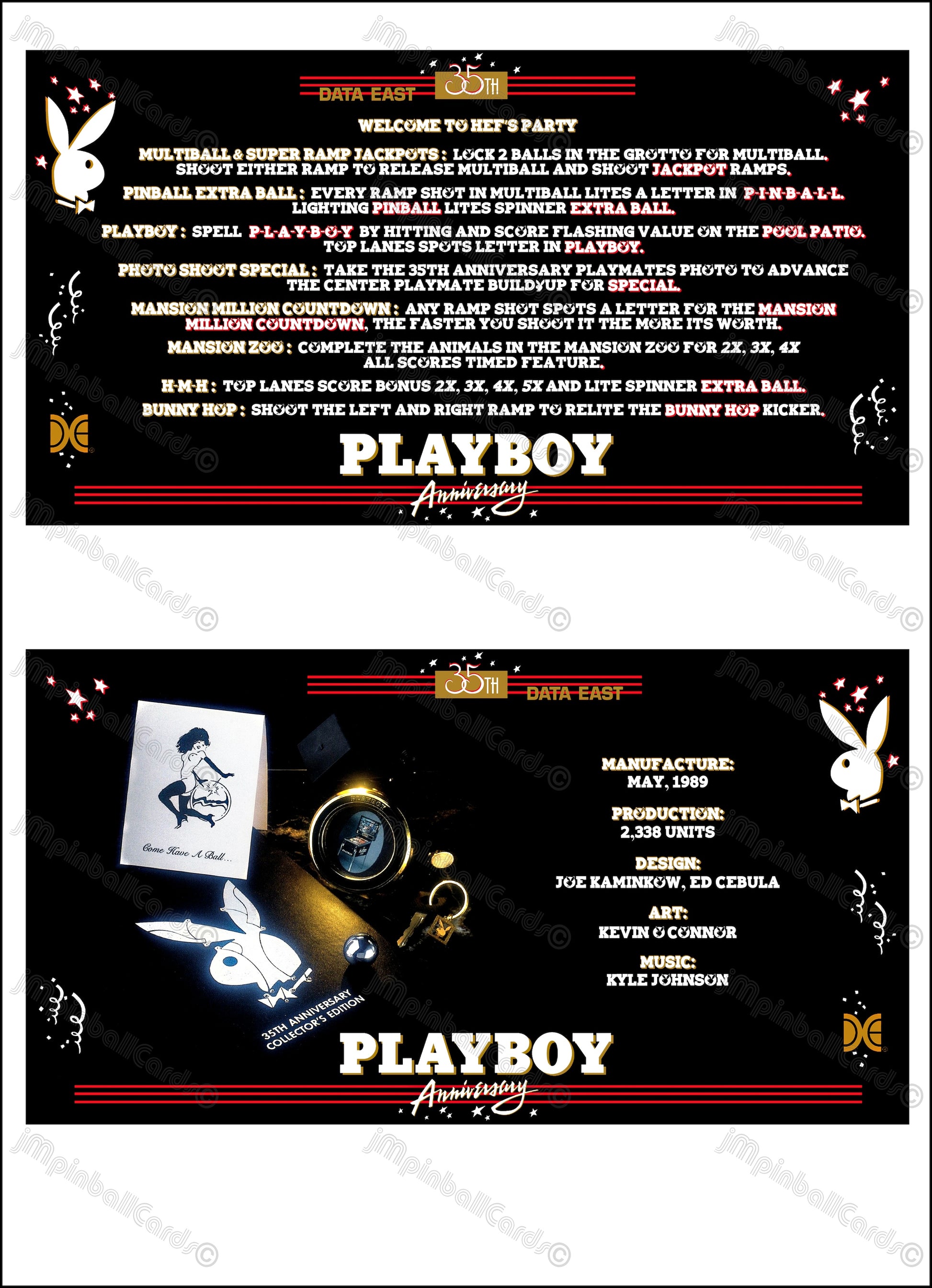 Data East Playboy 35TH Anniversary 1989 Jeu Cartes Instructions Flipper Custom Apron règles imprimées