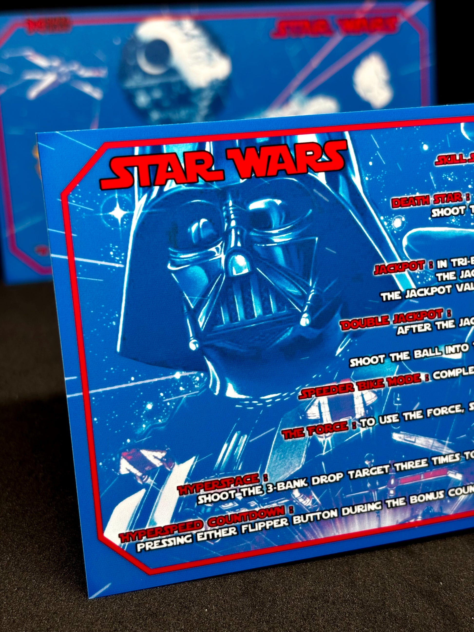 Instrucciones de las tarjetas del juego Data East Star Wars 1992 Pinball versión 2 - Tarjetas de delantal de pinball impresas personalizadas