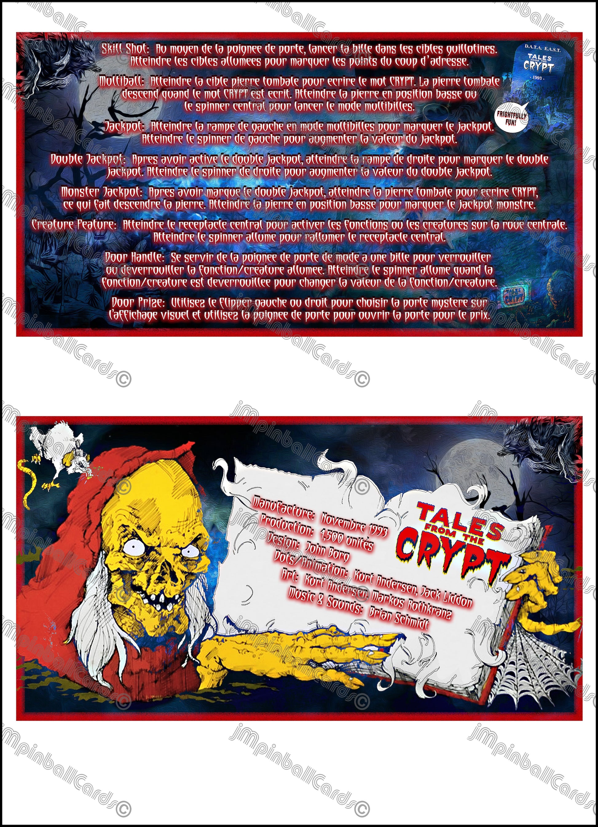 Instrucciones de las tarjetas del juego Data East Tales From The Crypt 1993, delantal personalizado de pinball, reglas impresas V5