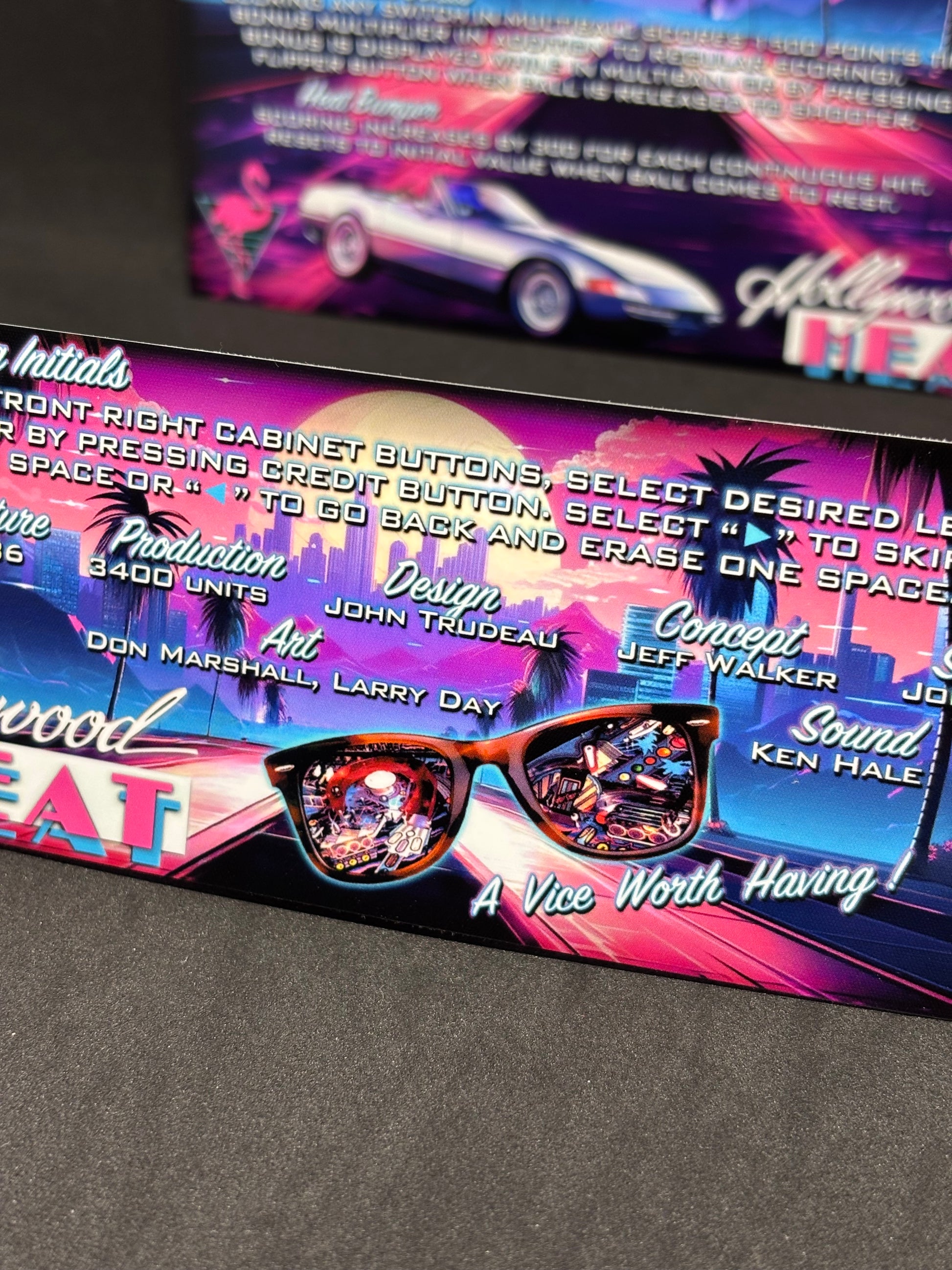 Instrucciones de las tarjetas del juego Gottlieb Hollywood Heat 1986 Pinball V1 Tarjetas de delantal de pinball con impresión personalizada