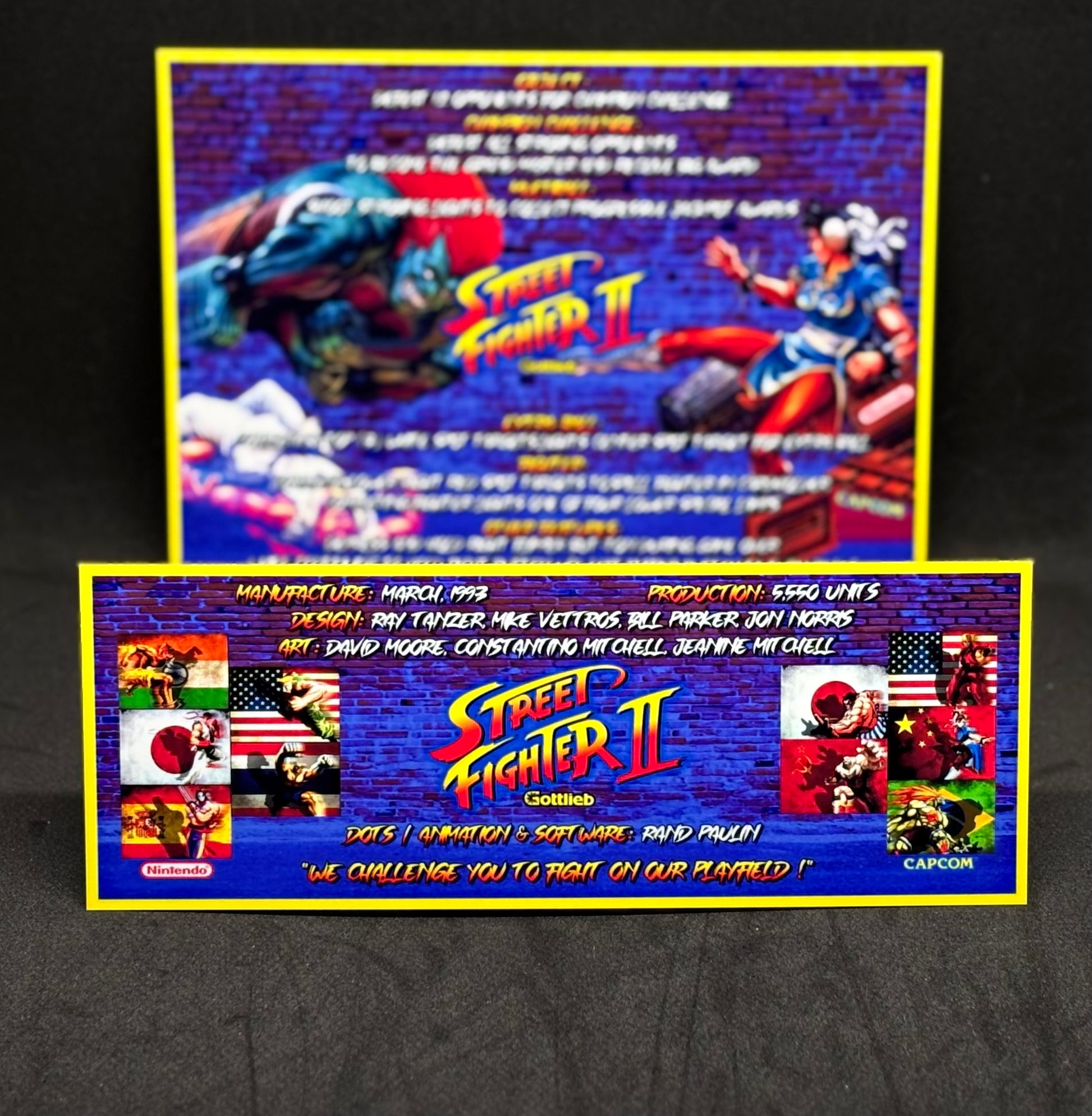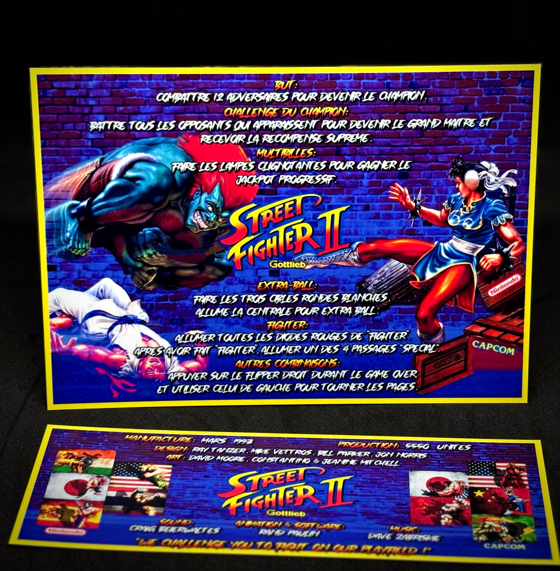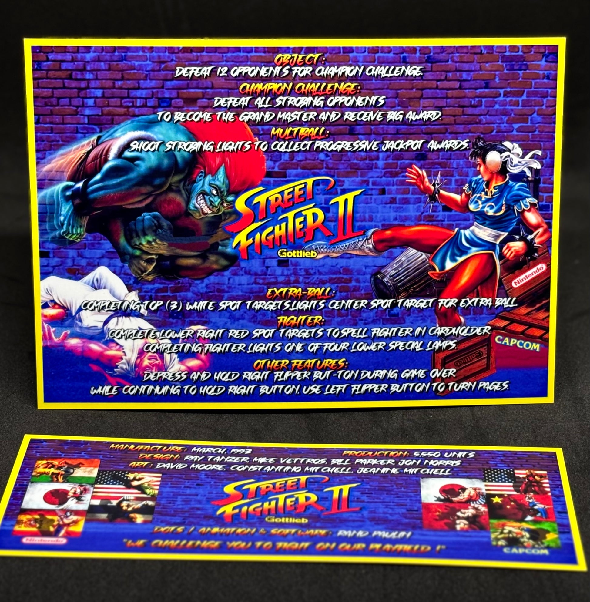 Instrucciones de las tarjetas de juego Gottlieb Street Fighter 1993 Pinball - Tarjetas de pinball personalizadas con impresión personalizada