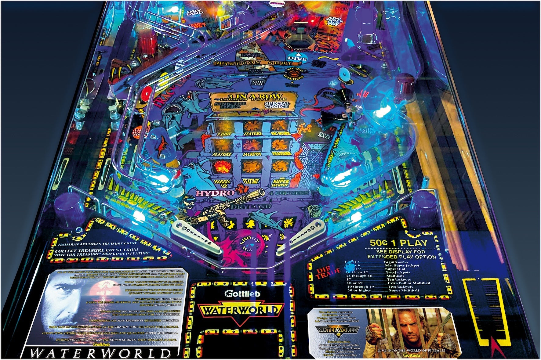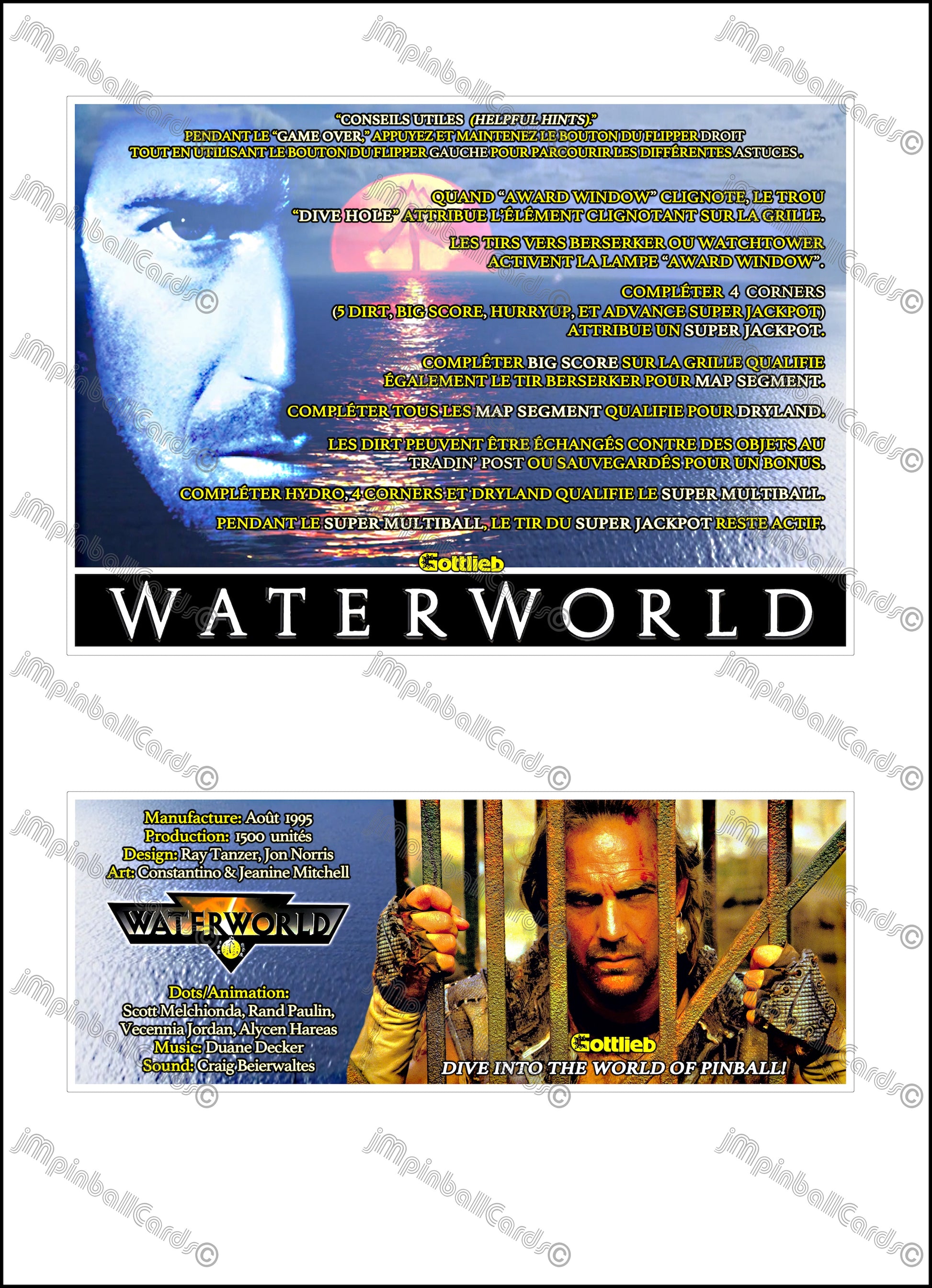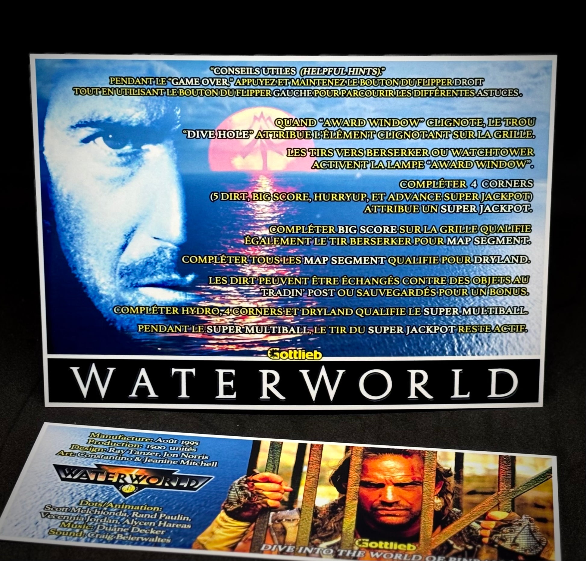Instrucciones de pinball para tarjetas de juego Gottlieb Waterworld 1995 - Tarjetas de pinball personalizadas con impresión personalizada