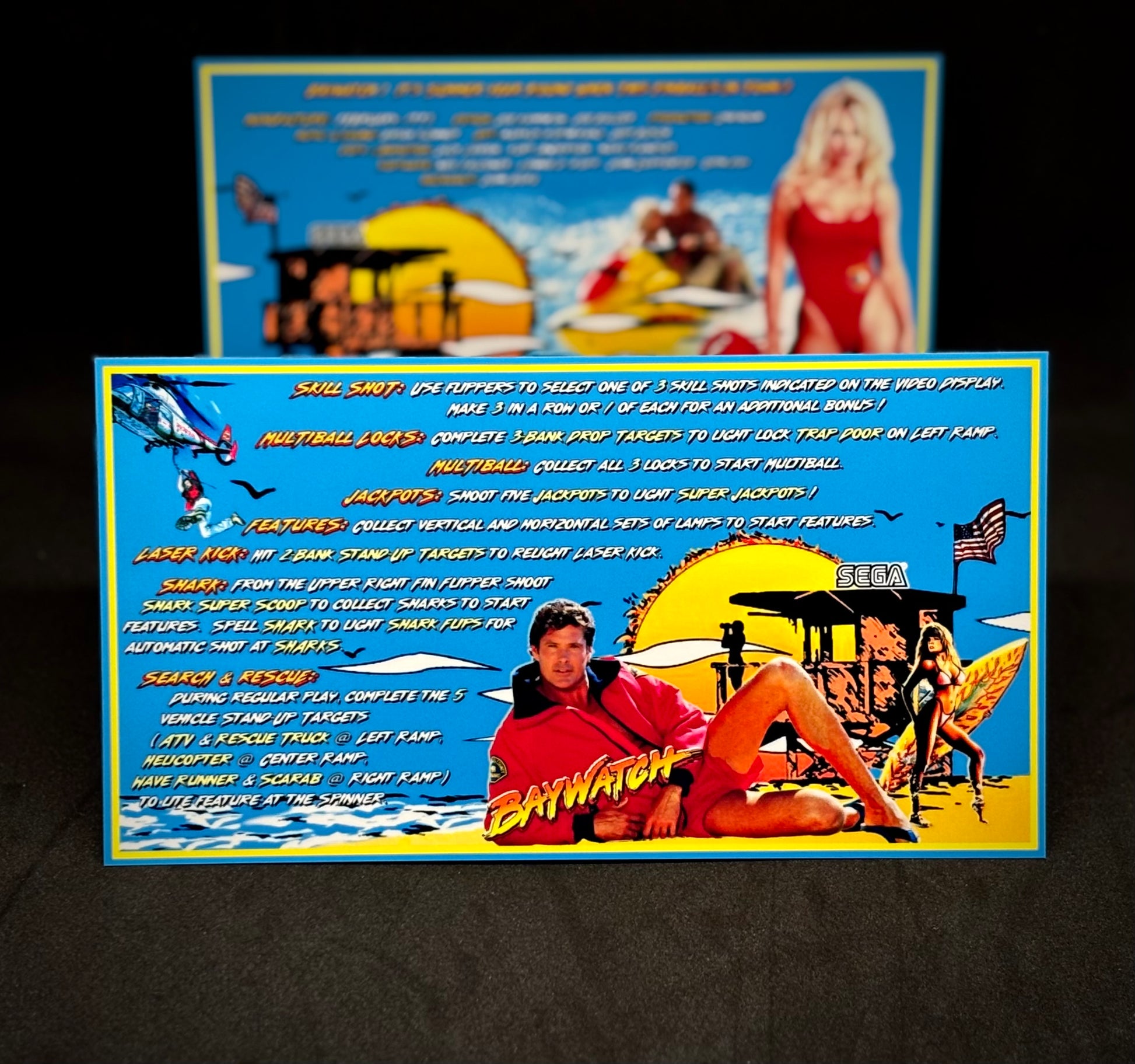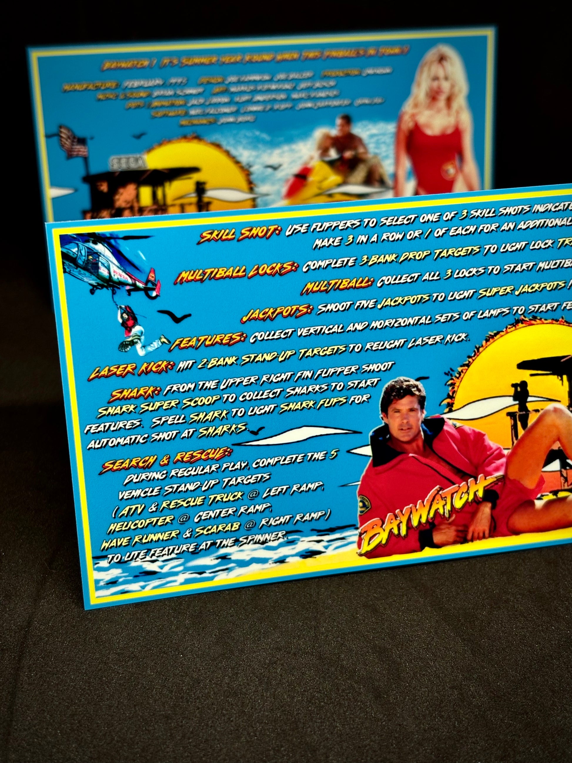 Instrucciones de las tarjetas del juego SEGA Baywatch 1995 Pinball - Tarjetas de pinball personalizadas con impresión personalizada