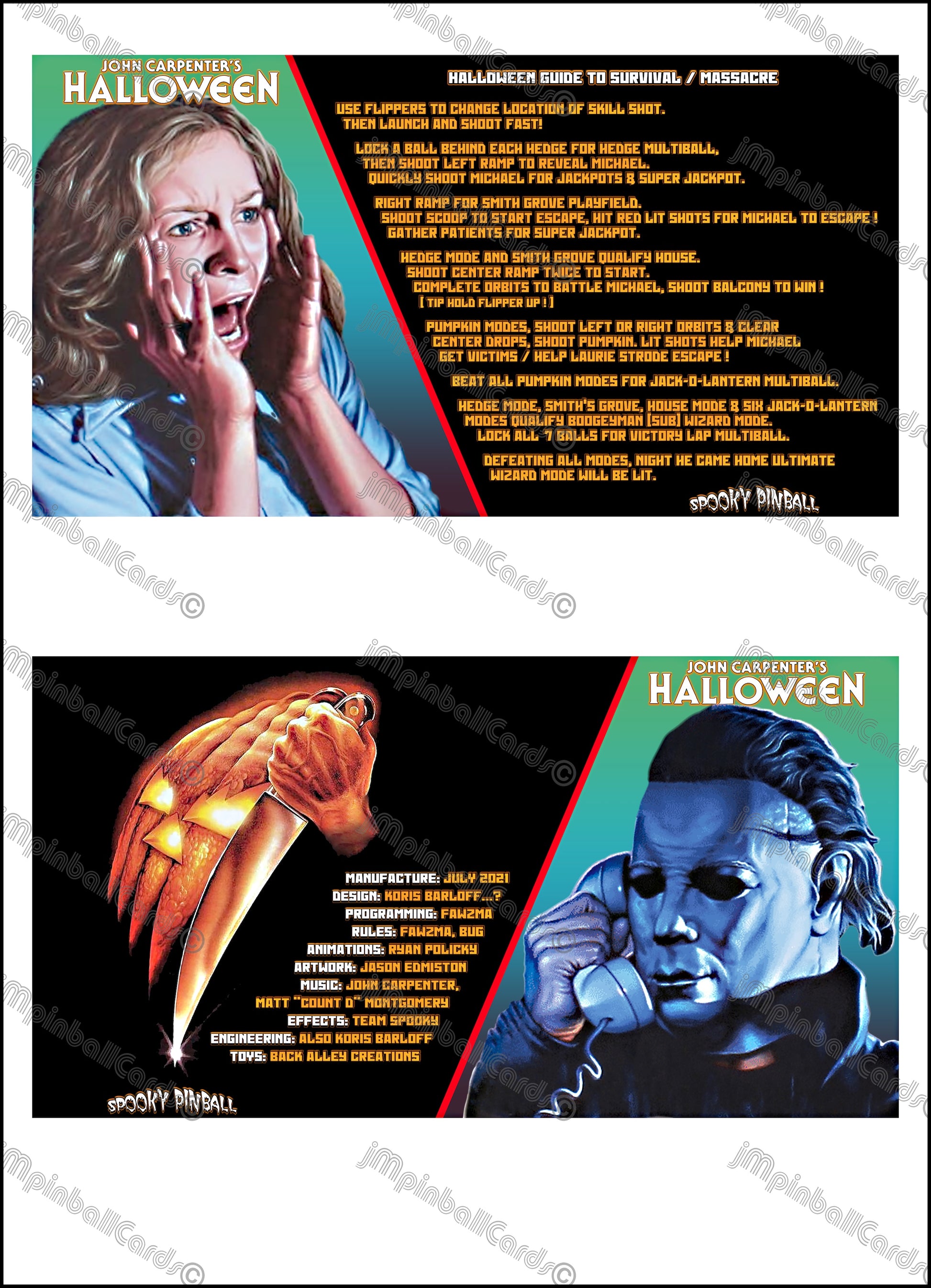Instrucciones de las tarjetas del juego SPOOKY Halloween 2021, versión Pinball 2, tarjetas de delantal de Pinball impresas personalizadas
