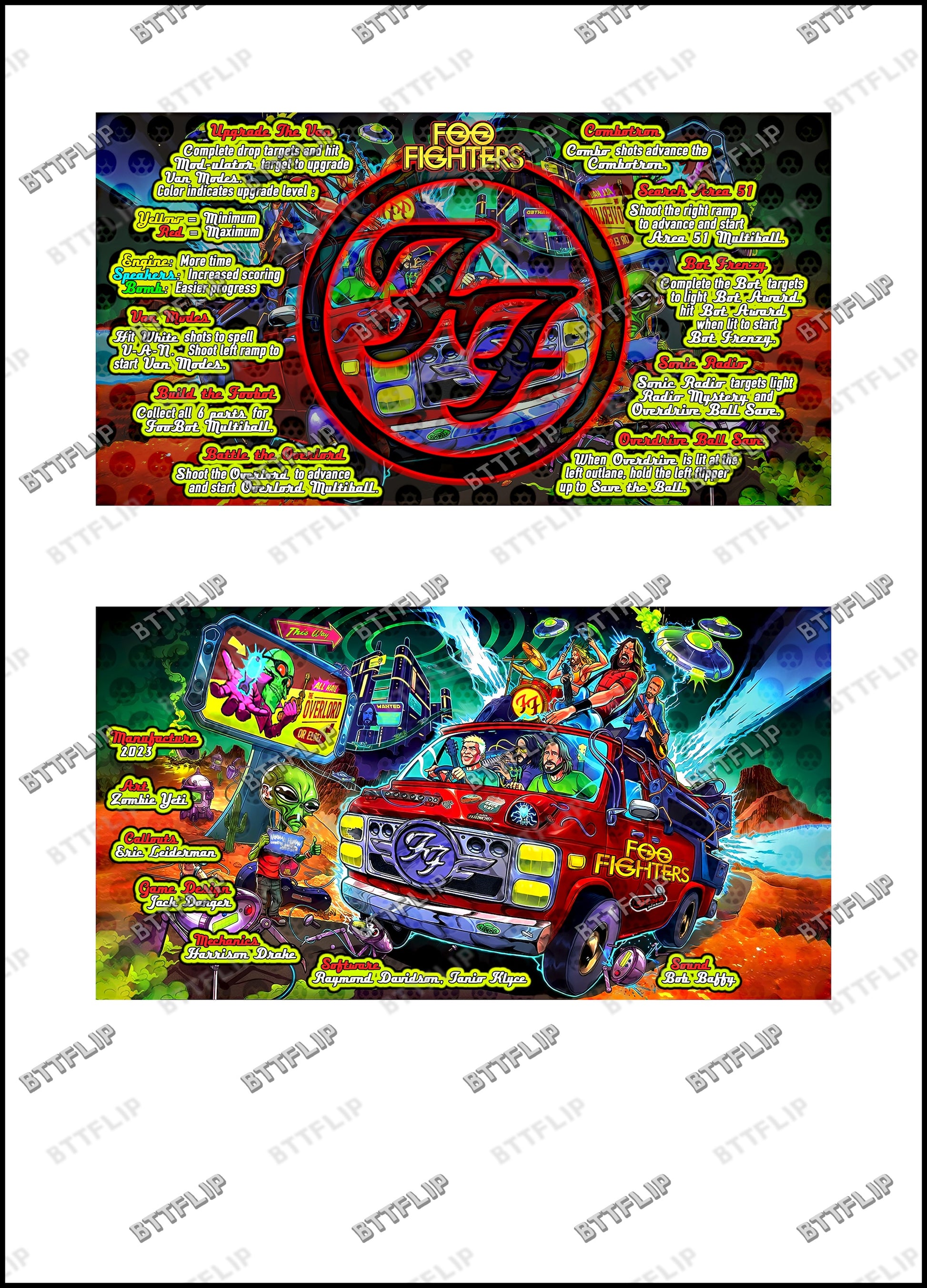 Stern Foo Fighters 2023 Jeu Cartes Instructions Flipper Custom Apron règles imprimées