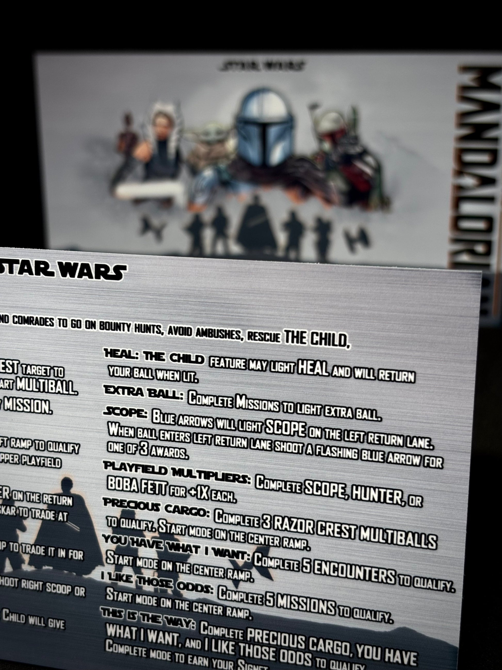 Stern Star Wars The Mandalorian 2021 Jeu Cartes Instructions Flipper Custom Apron règles imprimées V2