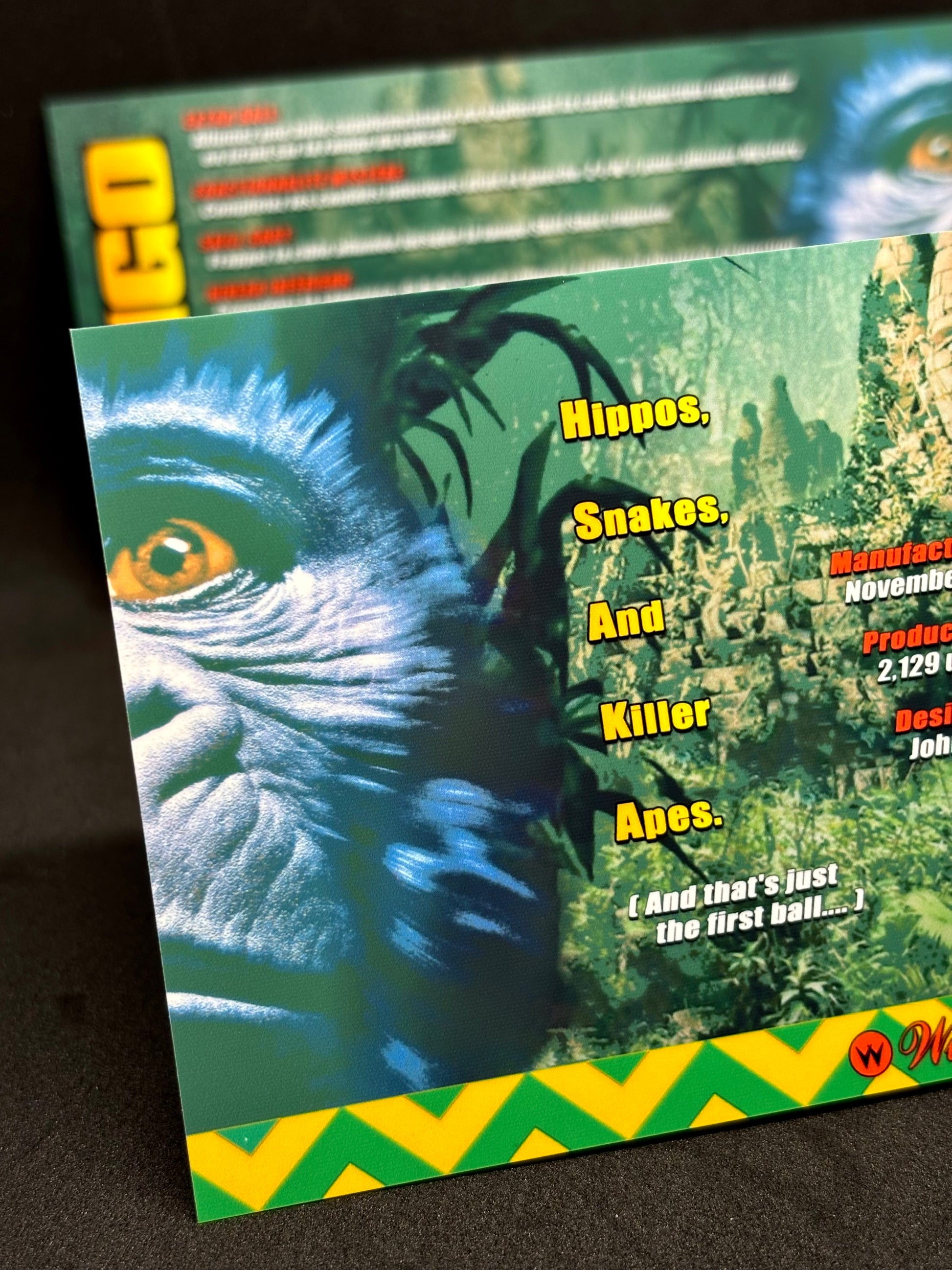 Instrucciones de las tarjetas de juego Williams CONGO 1995 Pinball Delantal personalizado reglas impresas