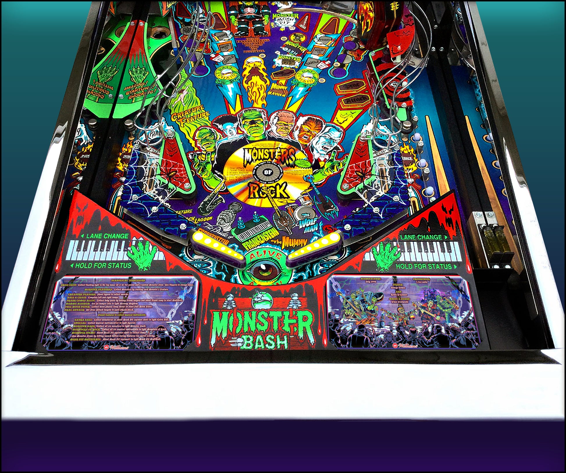 Instrucciones de las tarjetas del juego Williams Monster Bash 1998, delantal personalizado de pinball, reglas impresas (versión 2)