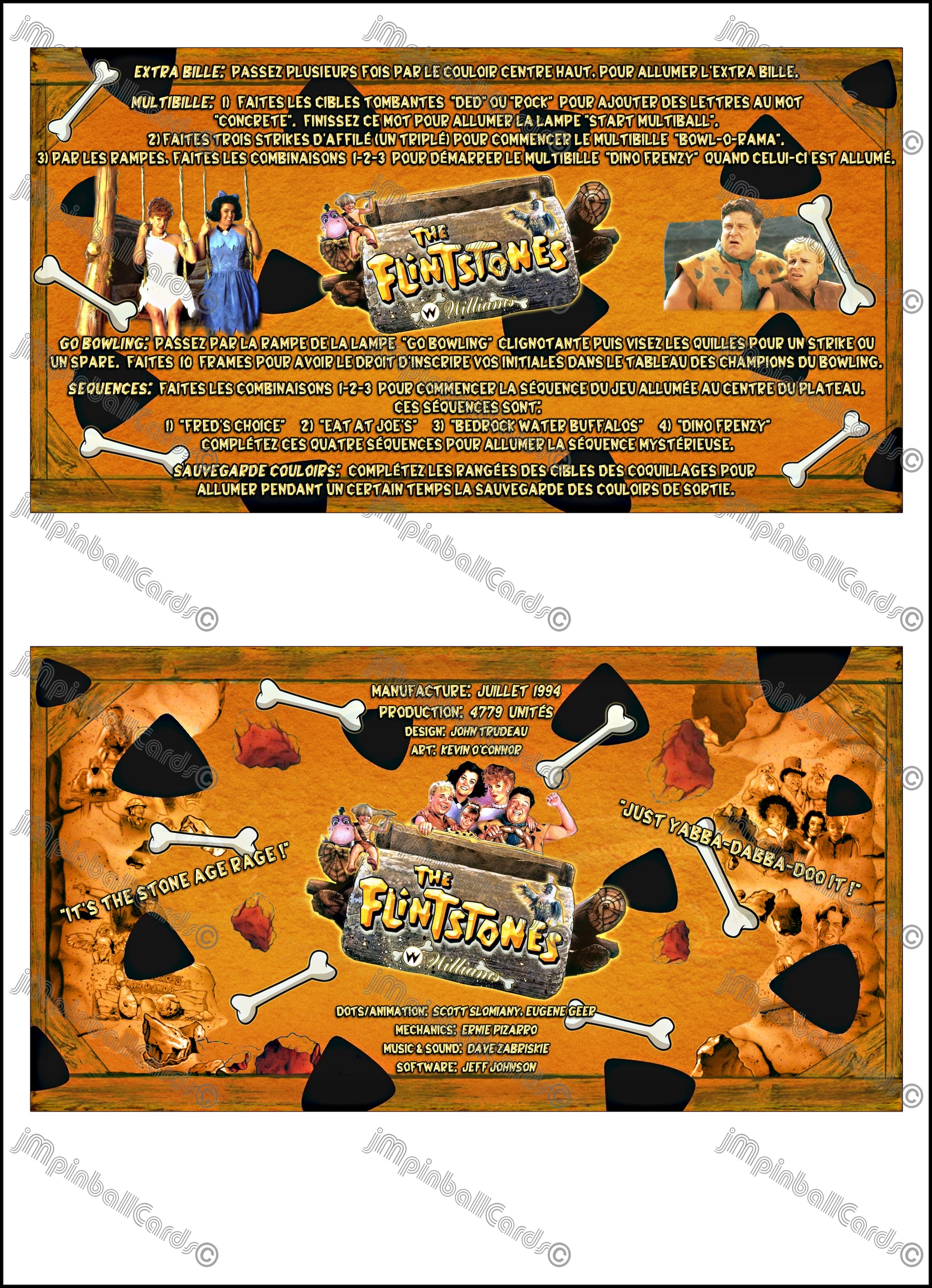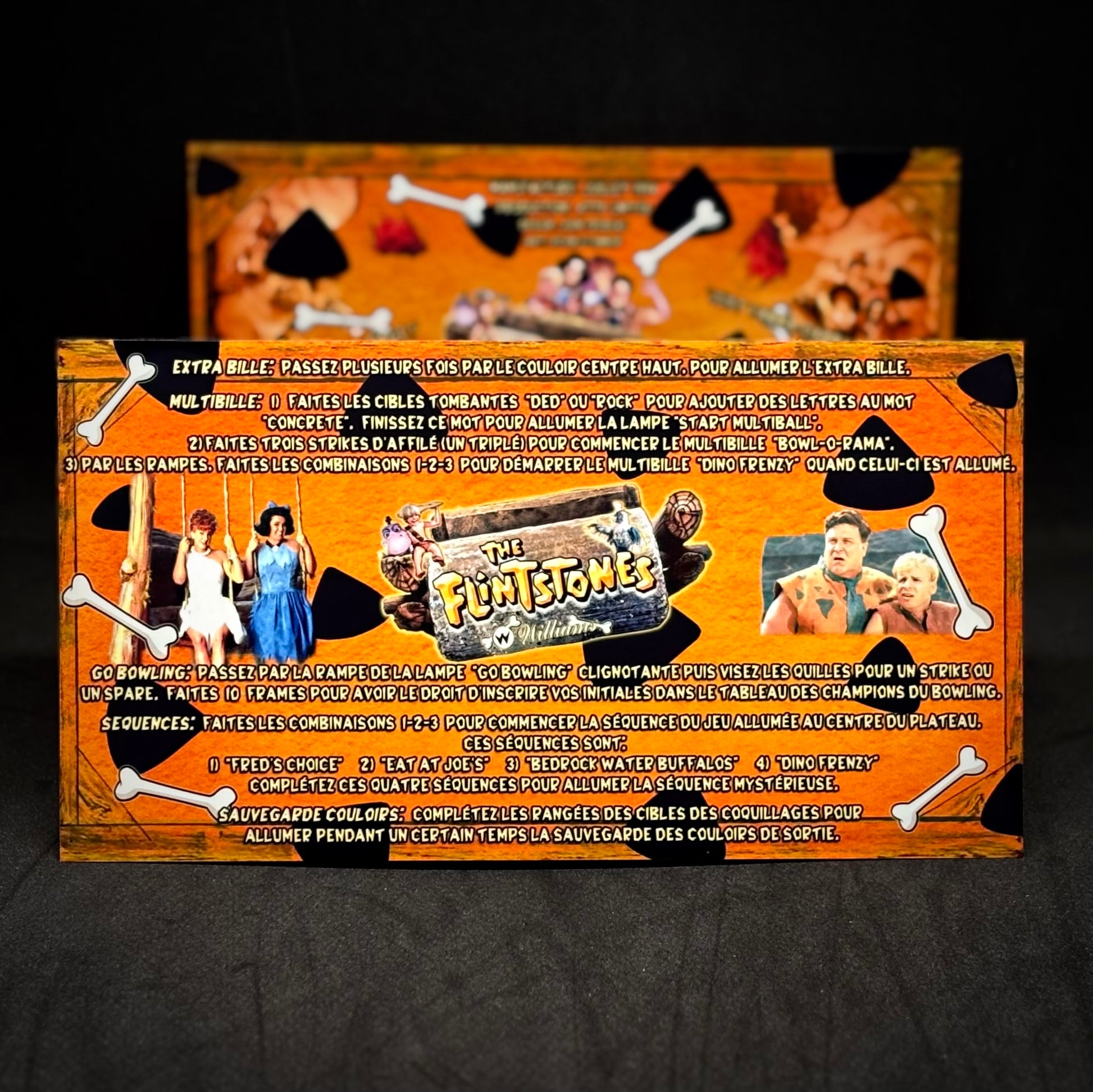 Instrucciones de las tarjetas del juego de pinball de Los Picapiedra (1994) de Williams, delantal personalizado, reglas impresas (V1)