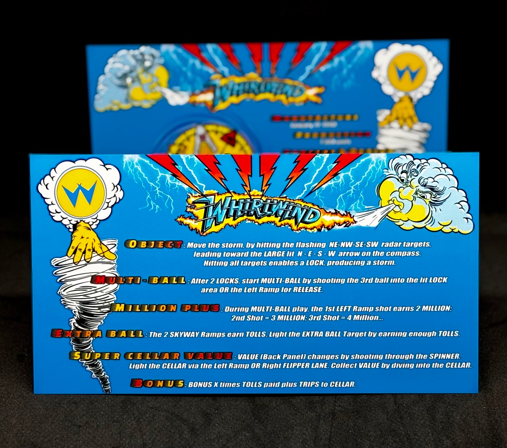 Instrucciones de las tarjetas del juego Williams Whirlwind 1990, máquina de pinball, delantal personalizado, reglas impresas