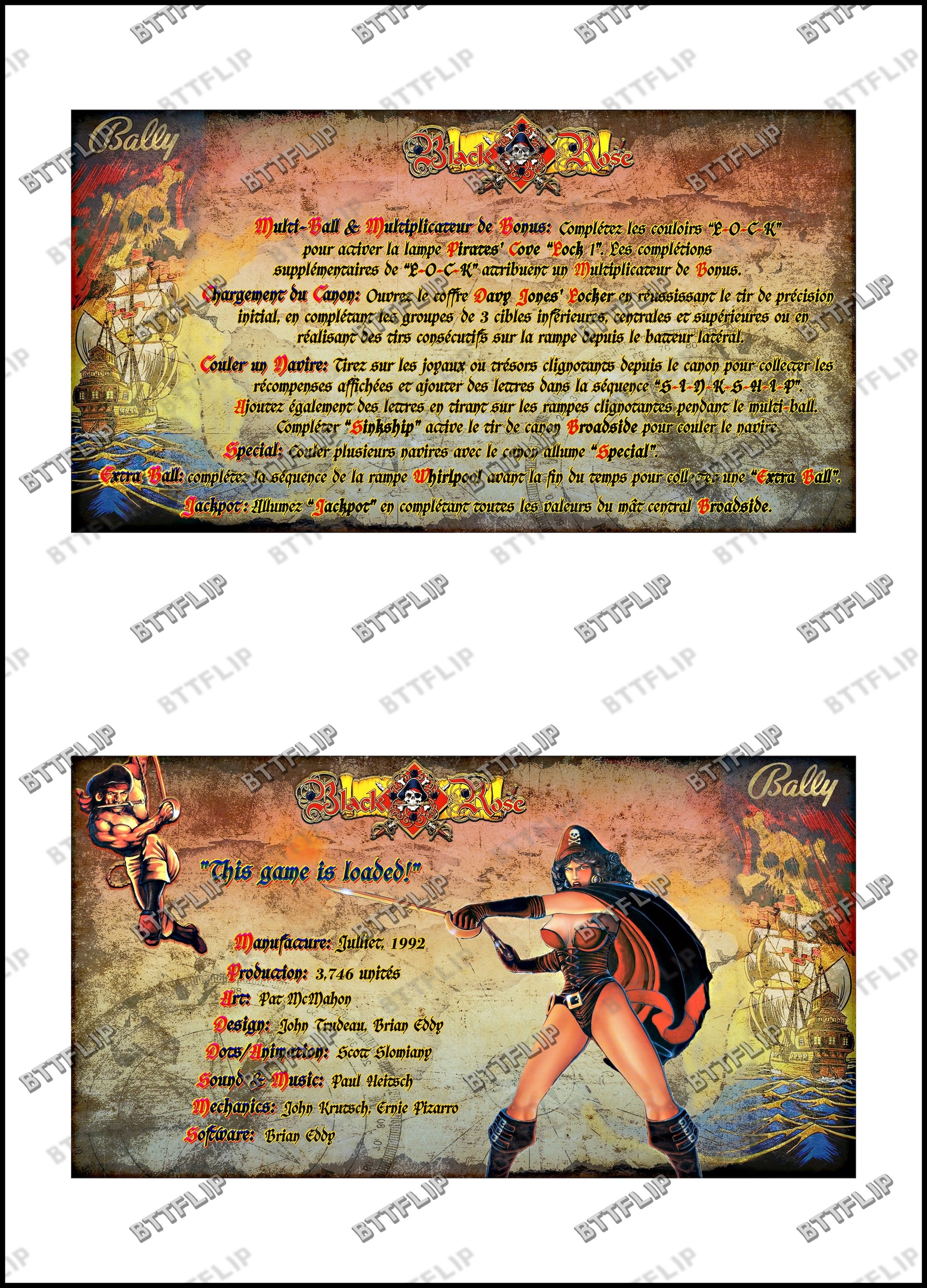 Bally BLACK ROSE 1992 Jeu Cartes Instructions Flipper Custom Apron règles imprimées