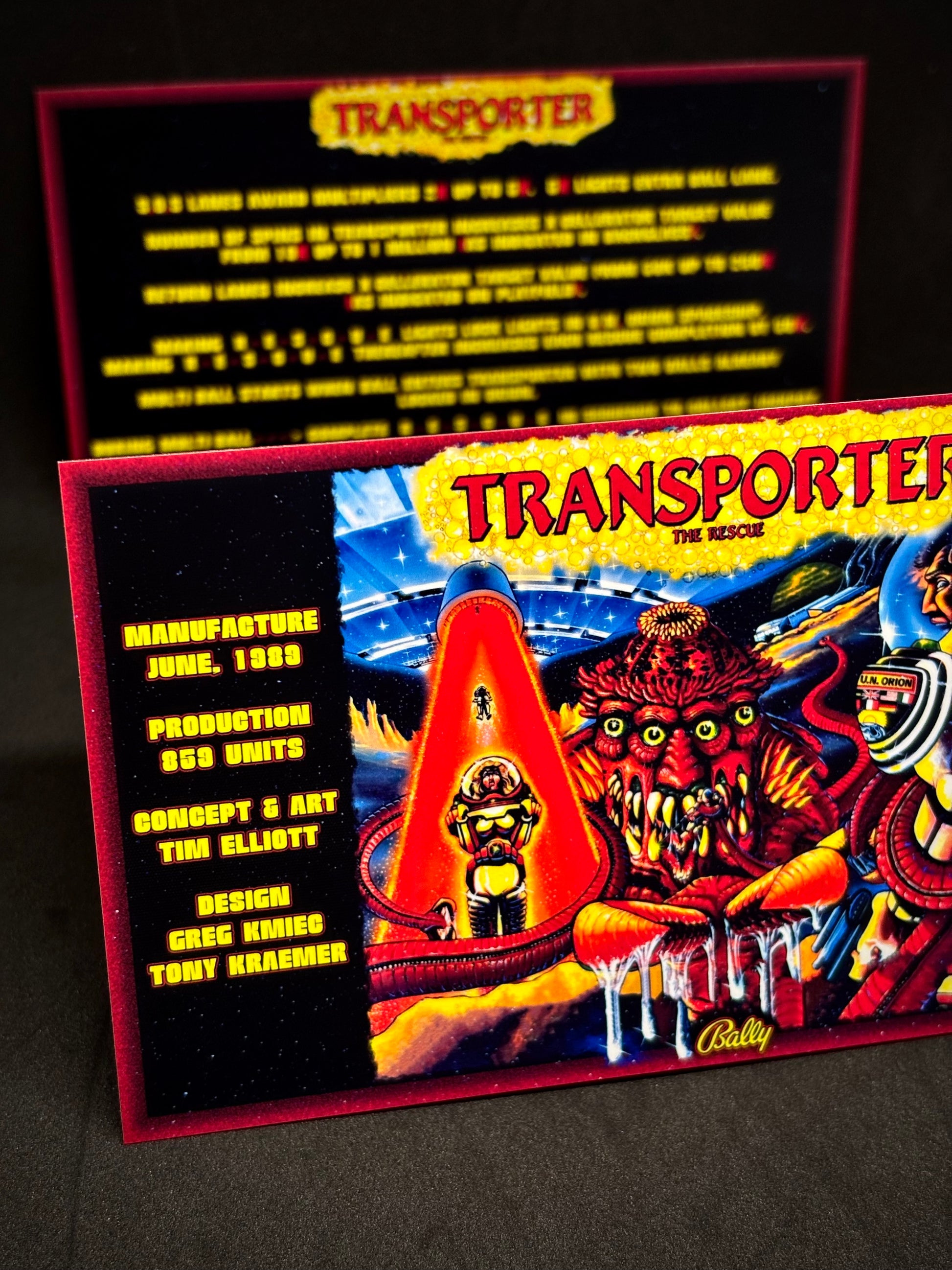 Bally Transporter The Rescue 1989 Jeu Cartes Instructions Flipper Custom Apron règles imprimées