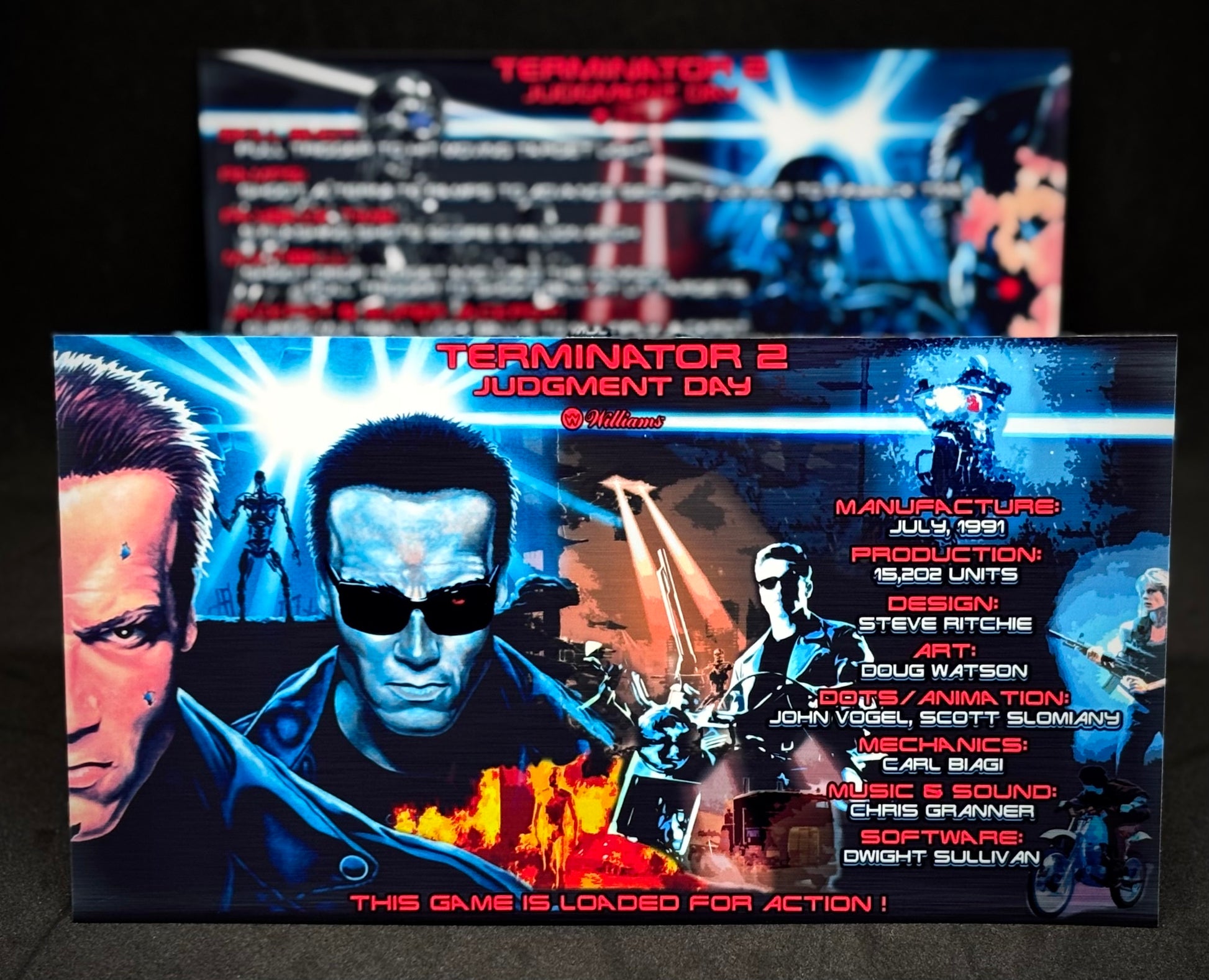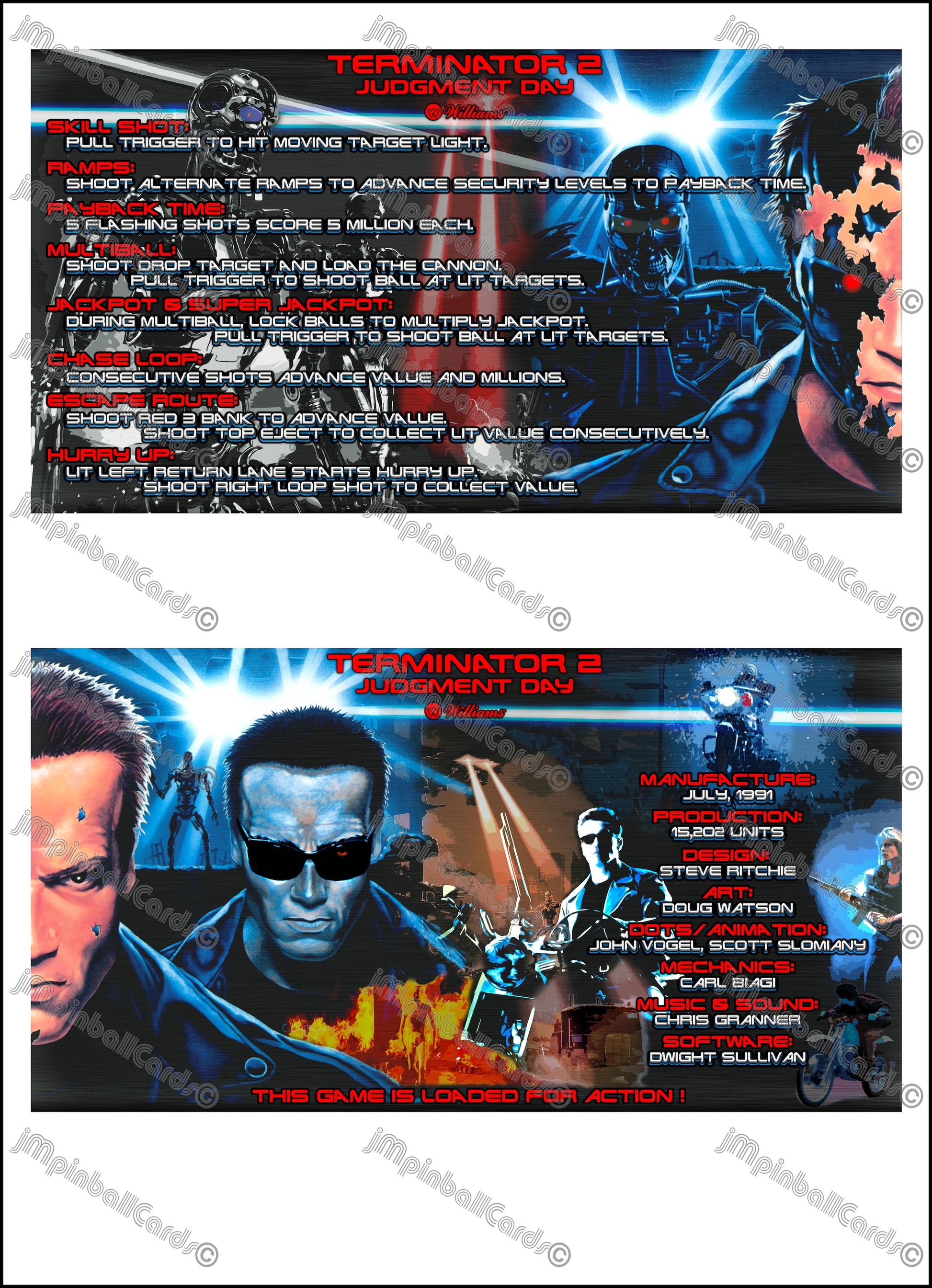 Williams T2 Terminator 2 1991 Jeu Cartes Instructions Flipper Custom Apron règles imprimées V1